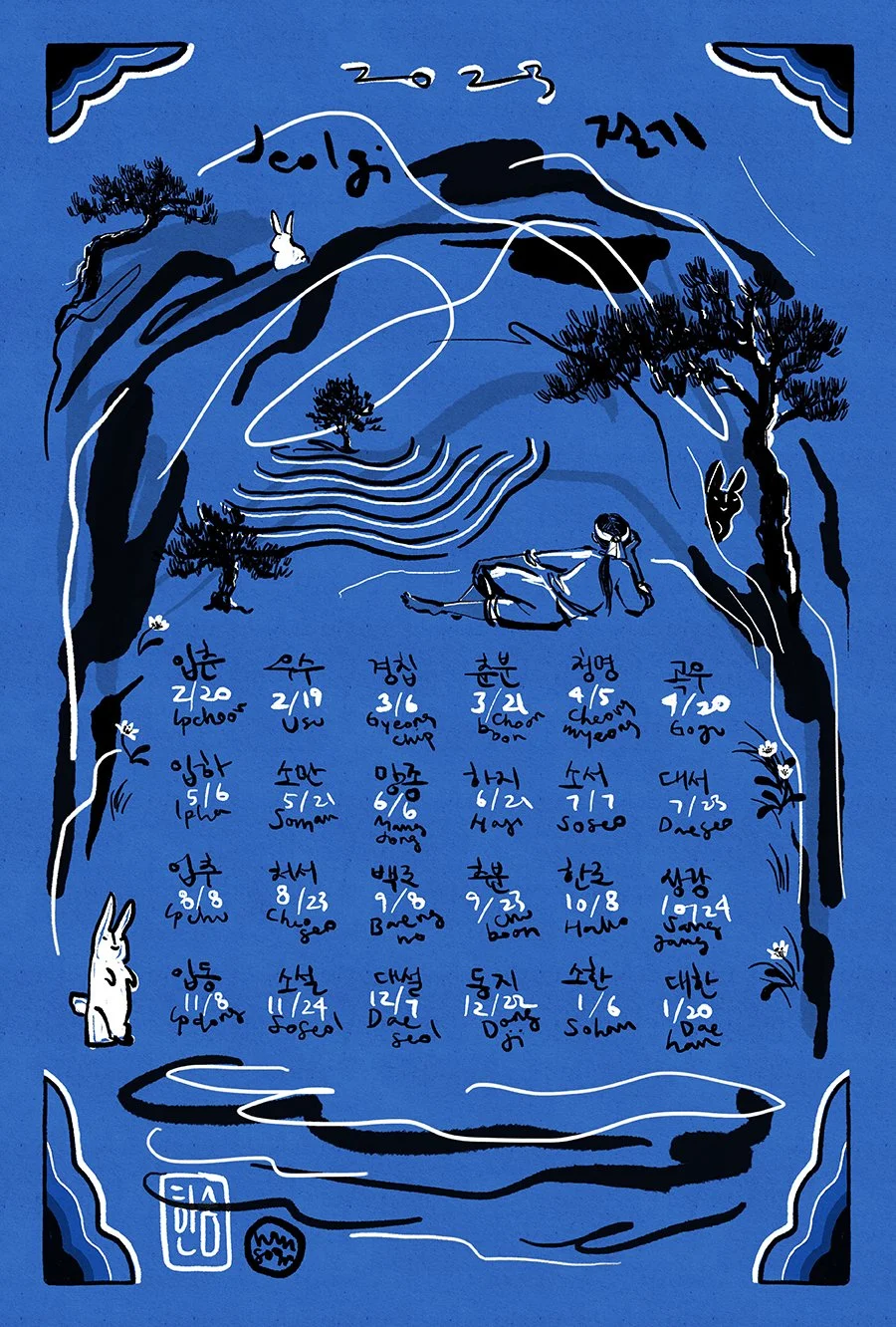 For each year since 2021, Hansoom has produced a Jeolgi poster and a journal. Though the Hansoom Jeolgi was written with care and love as to be accessible to all Koreans, we would like to acknowledge that our research into the seasonal significances, holidays, and traditions were based on access to southern Korean resources, understandings, retellings, and contemporary practices. Nonetheless, even today many of the seasons and holidays in the Jeolgi are recognized in both the north and the south. Additionally, we are rooted in the knowledge that wisdom about agriculture and land stewardship is always linked to indigenous sovereignty. Across time and space, land tenders have paid attention to and connected spiritually to the eternal truths of the sun, moon, clouds, and stars. We hope that the Hansoom Jeolgi can remind you of what unites us as one Korean people, while also expanding the possibilities for a Koreanness that exists beyond borders and that is connected to all colonized, displaced, and oppressed people around the world.